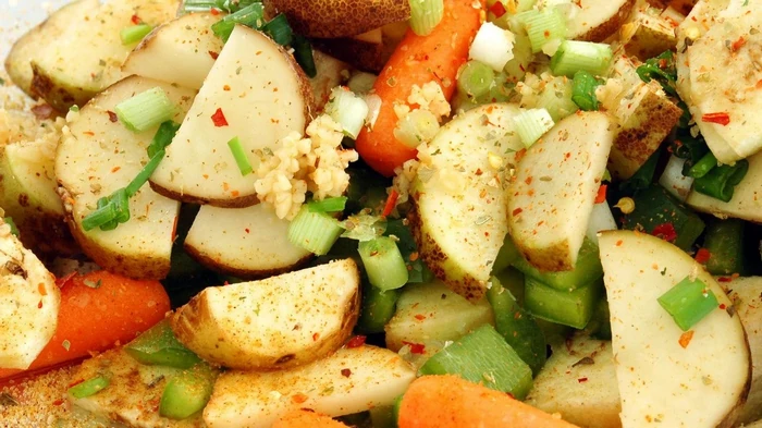 Bulvės su daržovėmis rankovėje puikiai tiks gavėnios stalui. Daržovės, keptos rankovėje, pasirodo sultingos, aromatingos ir išlaiko maksimalias naudingas savybes.