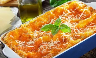 - Kad suktinukai įgautų įdomią formą, ant viršutinio įdaro sluoksnio atsargiai uždėkite orkaitės groteles, lengvai paspausdami. Tai suteiks vaizdinį vadovą, kaip pjaustyti tešlą maždaug 3–4 cm pločio juostelėmis.