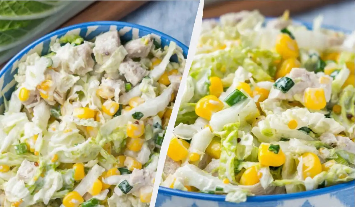 Pavasarinės kopūstų, kukurūzų ir vištienos salotos
